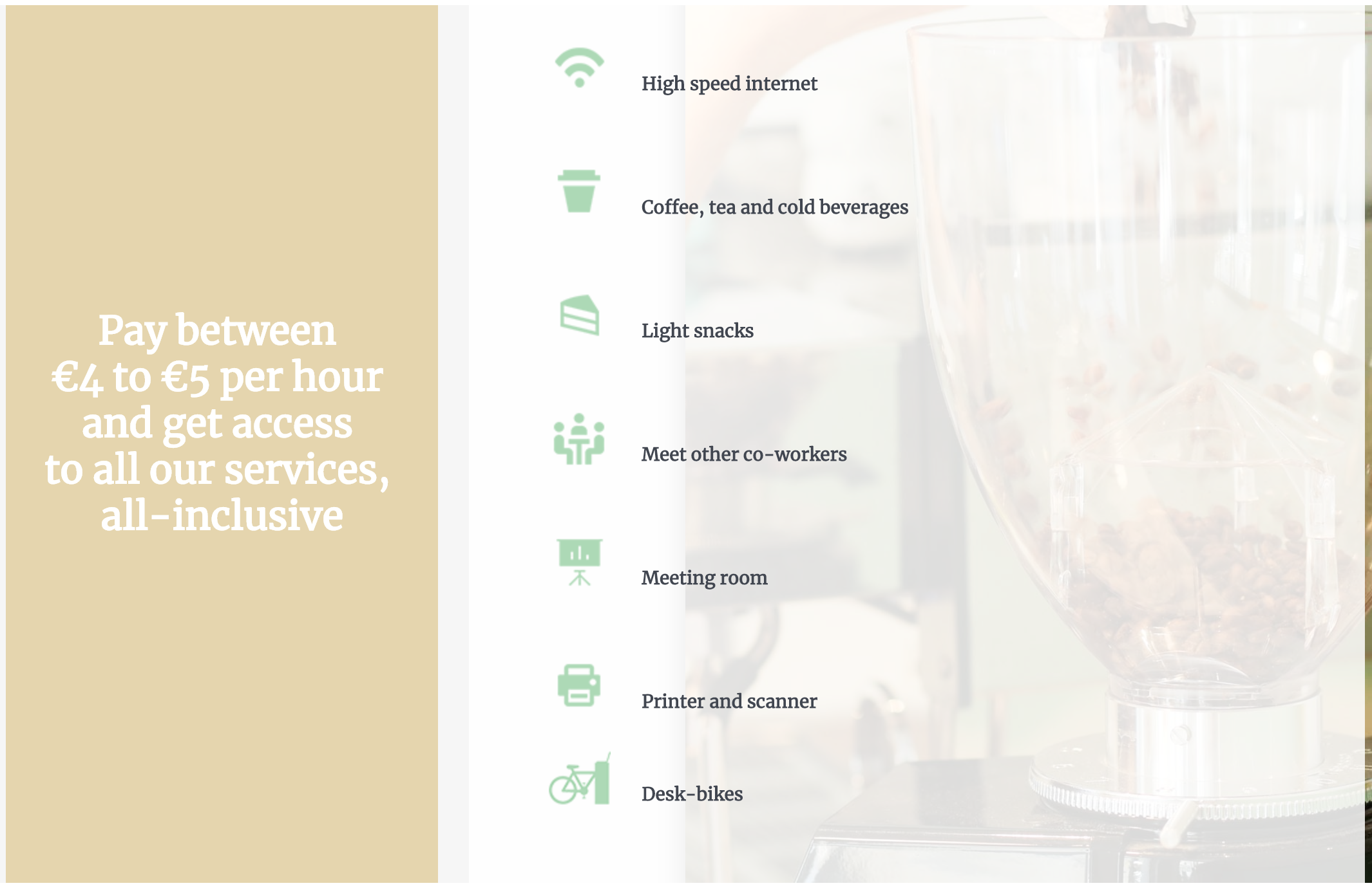 提供しているサービスの一覧(Närmare Coworking HPより)。