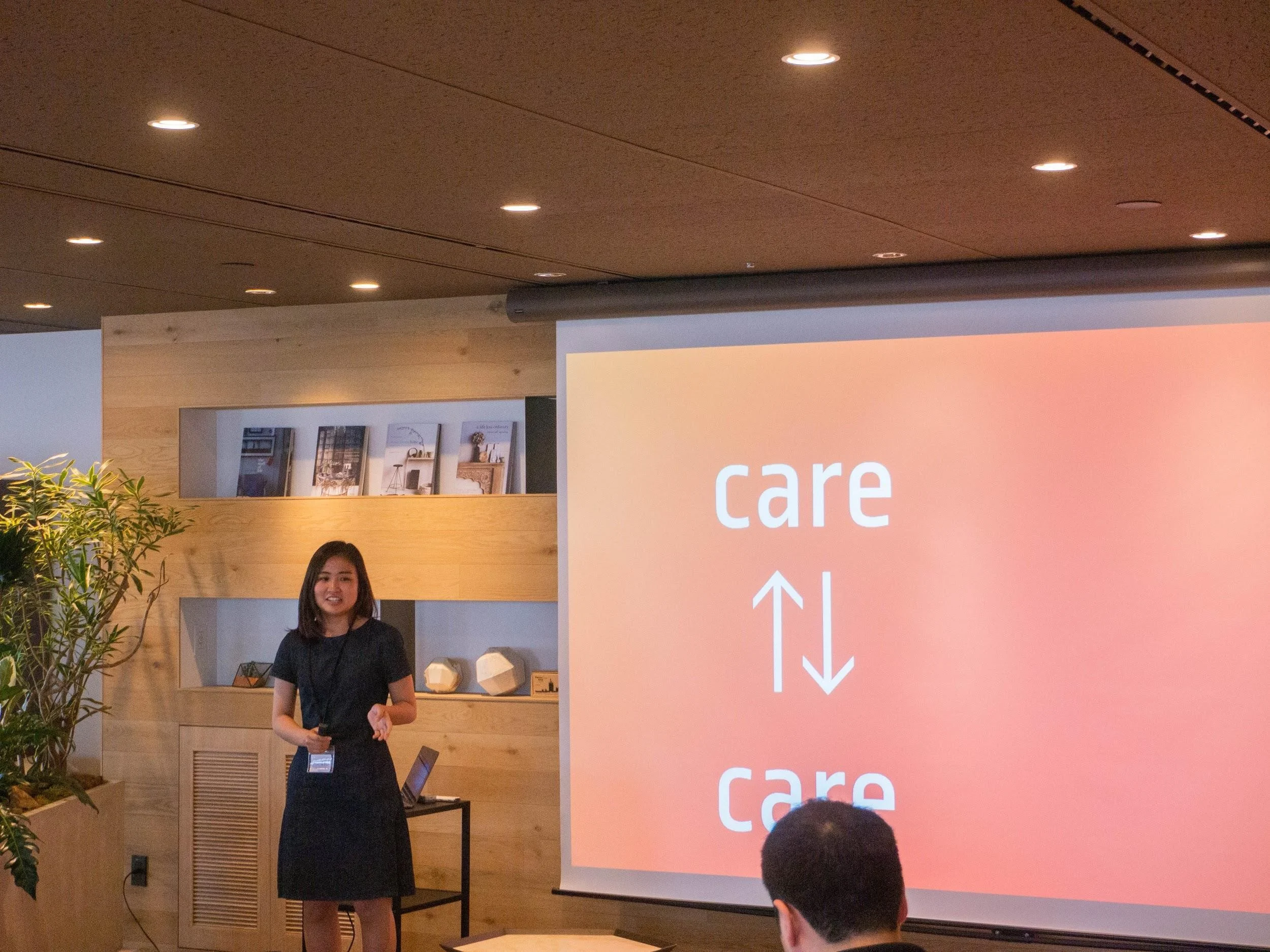 現在大学2年生の内山美紀さん(以下、内山さん)の提案は、「家族のケアをしている人のコミュニティ」。また、家族の中でも内山さんが特に興味を持ったのが、「介護」についてです。介護者が気軽に相談できるオンラインコミュニティや掲示板は存在するものの、その負担が軽減されていない現状を知り、家族の中でも得に介護を取り上げようと考えたのだそうです。