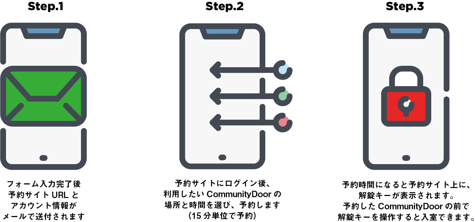 CommunityDoorは好きな時に予約をして15分単位での利用ができる個室型ワークスペースです。
